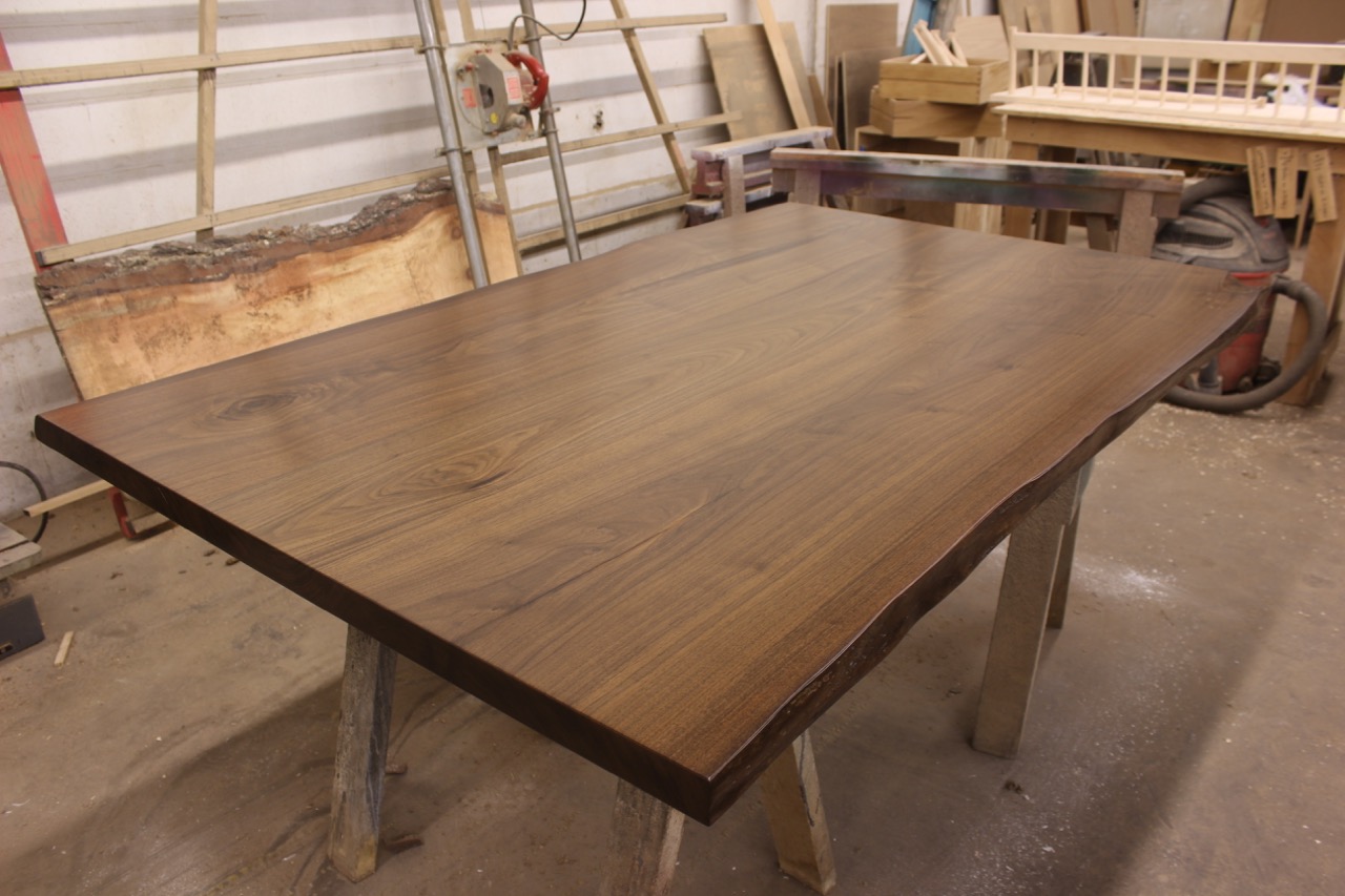 WunderWoods river recovered walnut live natural edge slab table top left